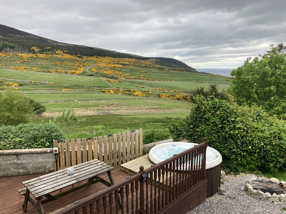Great place for Sky Watching the Secret retreat Log Cabin with it’s own Private Hot Tub is set in deep countryside, within private grounds of 3/4 acre with stunning 360 degree picturesque views over the Aberdeenshire countryside. This stunning Log Cabin lies within 2 miles of the lovely picturesque coastal village of Gardens town and Pennan made famous for the film with Bert Lancaster ‘The Local Hero’. Sleeps 2 Sorry no Pets